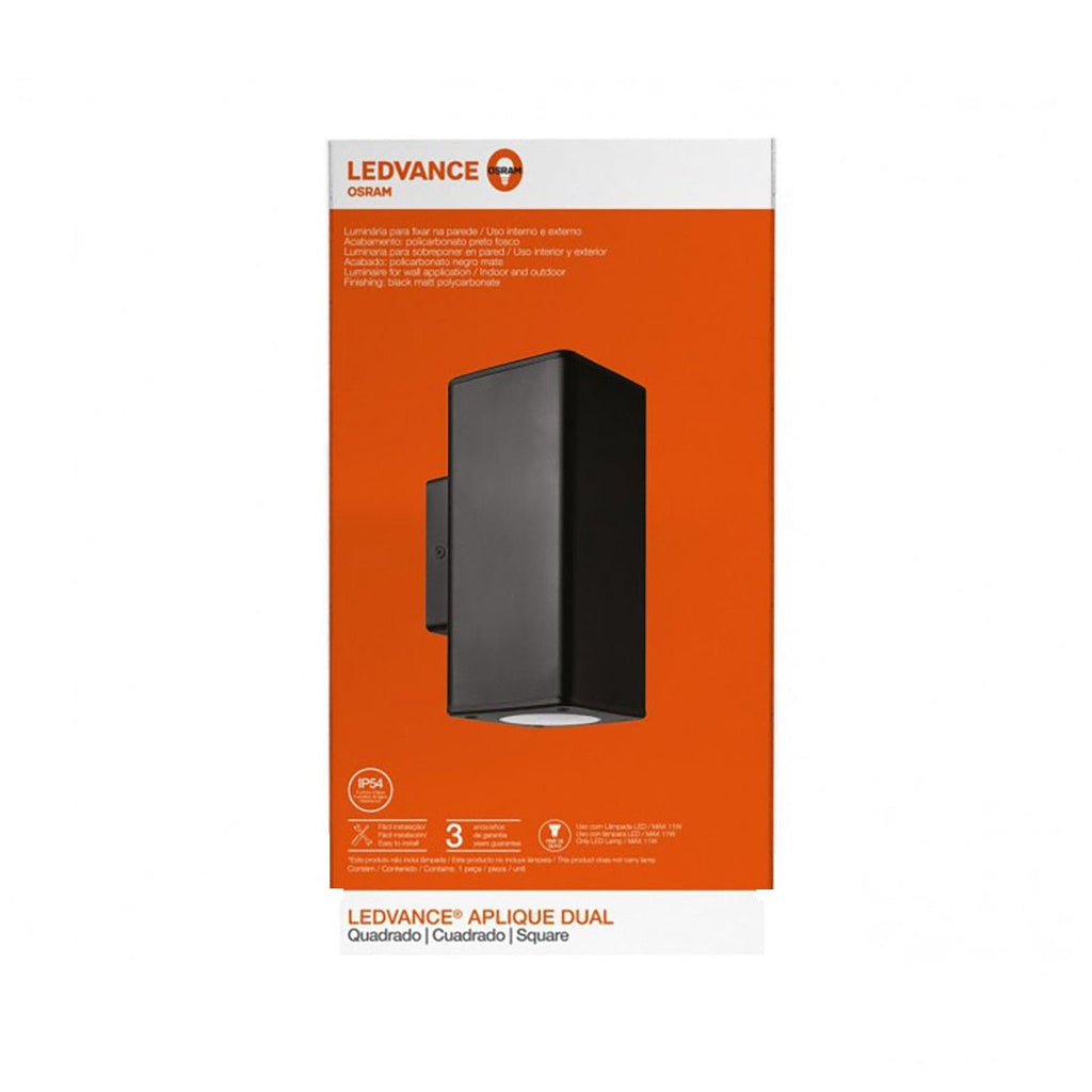 7014802 LEDVANCE APLIQUE DUAL IP54 SOCKET GU10 NEGRO NO INCLUYE LAMPARA